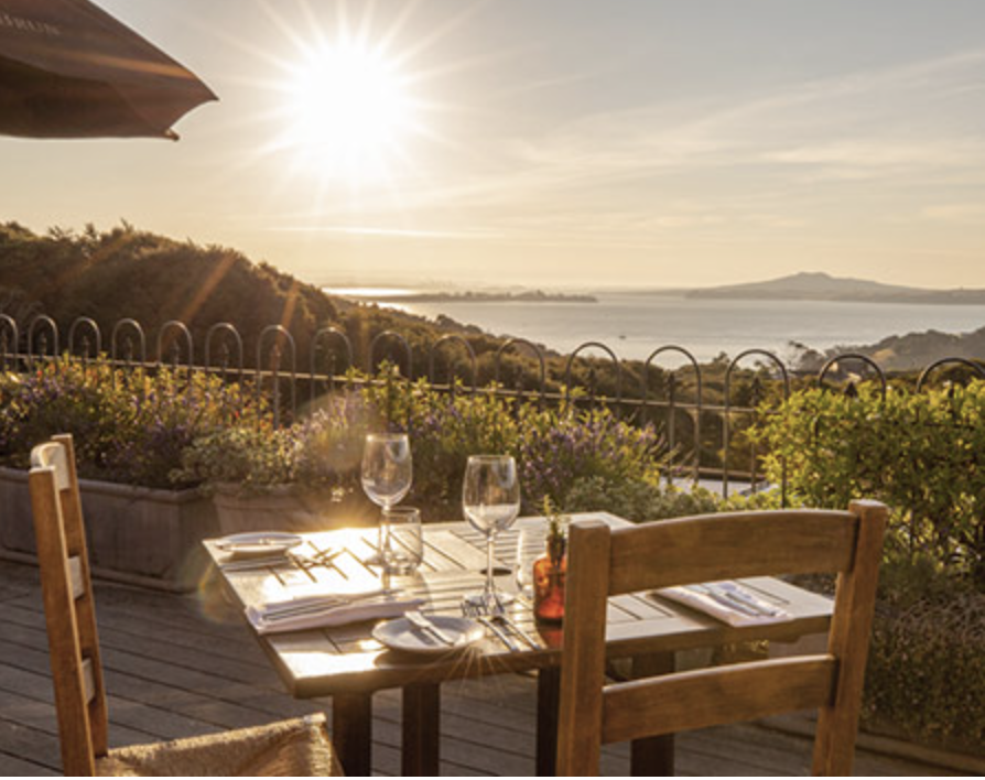 Begin your evening at Batch Winery, perched atop one of Waiheke’s highest vineyards. With 360° views over the Hauraki Gulf, Auckland and the Coromandel, the setting is breathtaking. Known for its boutique, high-quality wines and stylish cellar-door experience, Batch is an elegant start to your evening.